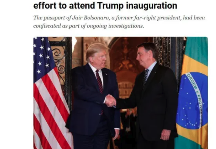 A decisão do ministro Alexandre de Moraes de negar a devolução do passaporte de Jair Bolsonaro e desautorizá-lo de viajar para a posse de Donald Trump nos Estados Unidos, marcada para a próxima segunda-feira (20), ganhou destaque na imprensa internacional.